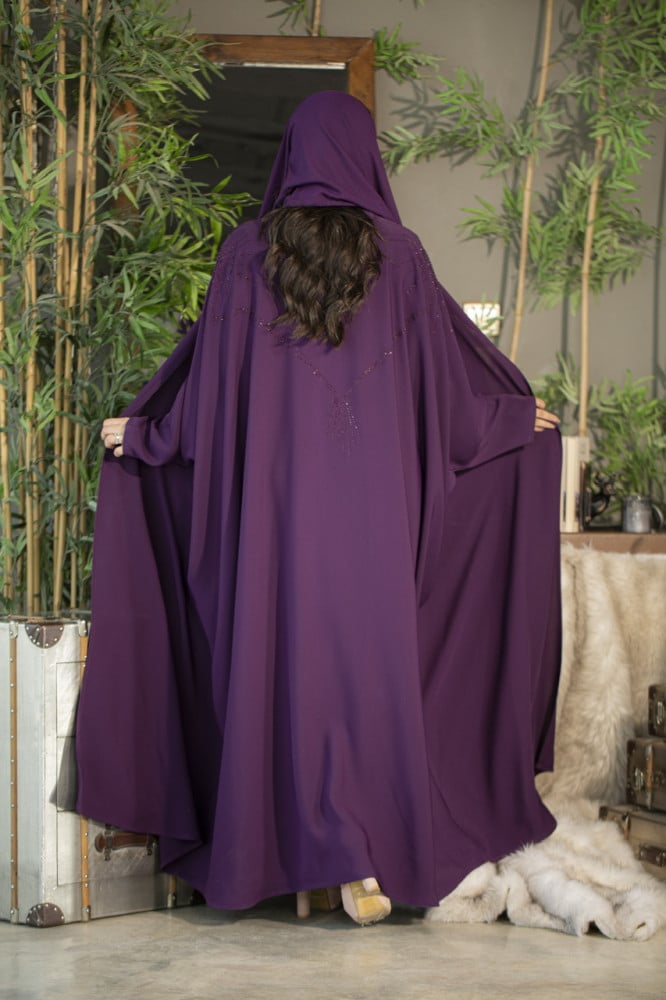تفاصيل العباية🌹/عباية نص بشت بنفسجي بشك اعلى الاكمام والخلفالقماش : نداالطرحة : بنفسجي( العباية لف )