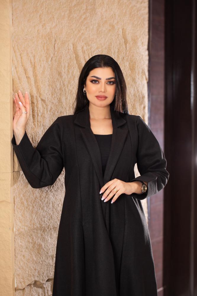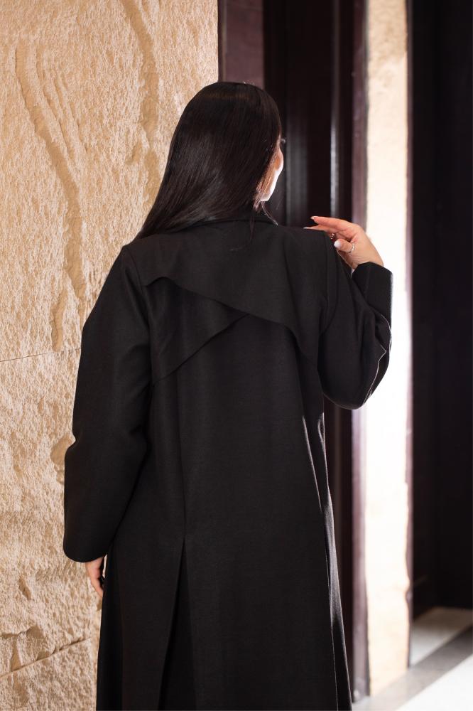 عباية جوخ اسود بكسرات امامية وخلفية